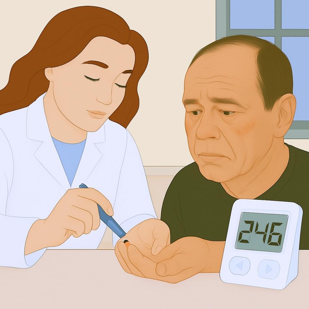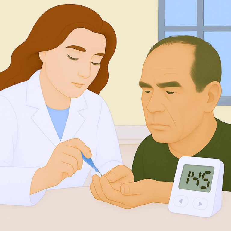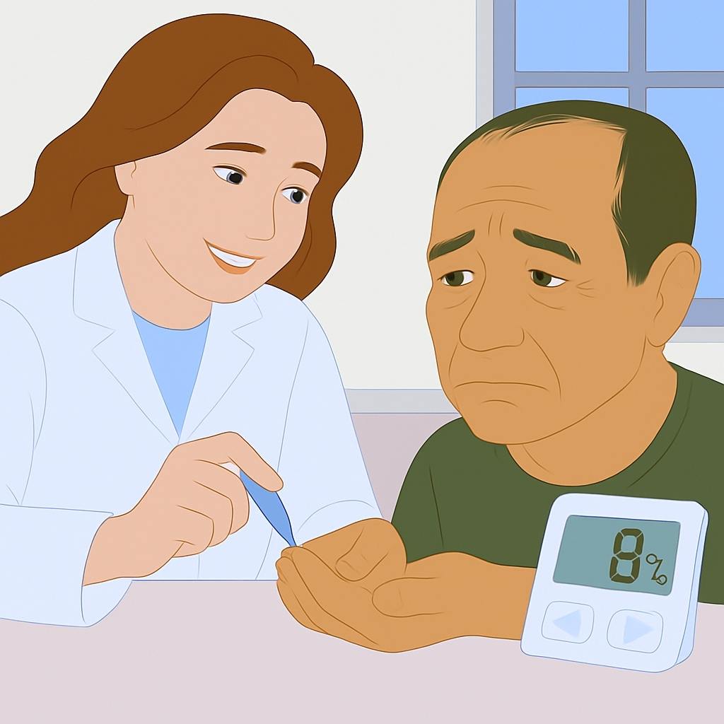 En Farmacia Santías (Aspe) medimos la hemoglobina glicosilada (HbA1c), que indica tu nivel medio de glucosa en los últimos 2-3 meses.